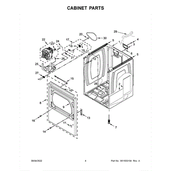 Cabinet housing for dryers. This outer shell encases internal components. Replace if cracked, rusted, dented, or structurally damaged from impact or wear.