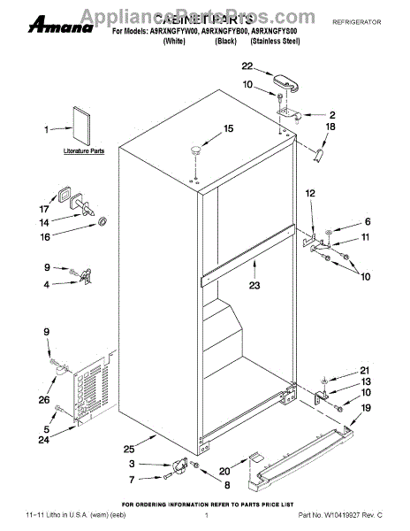 Repair manual for refrigerators and freezers made by Whirlpool. Covered brands include Whirlpool, Sears, Kenmore, Kitchen Aid, Roper, and Estate. Easy to follow photographs and step-by-step repair procedures.