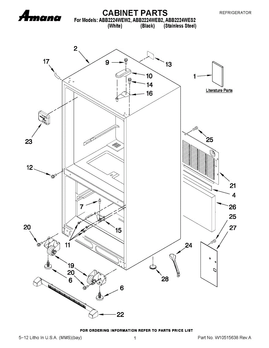 Front left roller assembly supports your refrigerator and enables smooth movement for cleaning. Replace when damaged or worn from moving. Verify fit with your model.