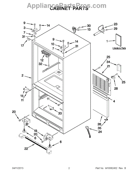 The Leveling Leg is an OEM replacement part for Whirlpool refrigerators. It is one of four legs situated internally at the base corners for proper tilt positioning. It raises or lowers each leg independently to stabilize units on uneven kitchen floors. Causes of replacement consist of wear from continual torque required during positioning processes. Thread damage or corrosion buildup attributable to floor locations over extended use necessitates periodic renewal as well. Symptoms involve: