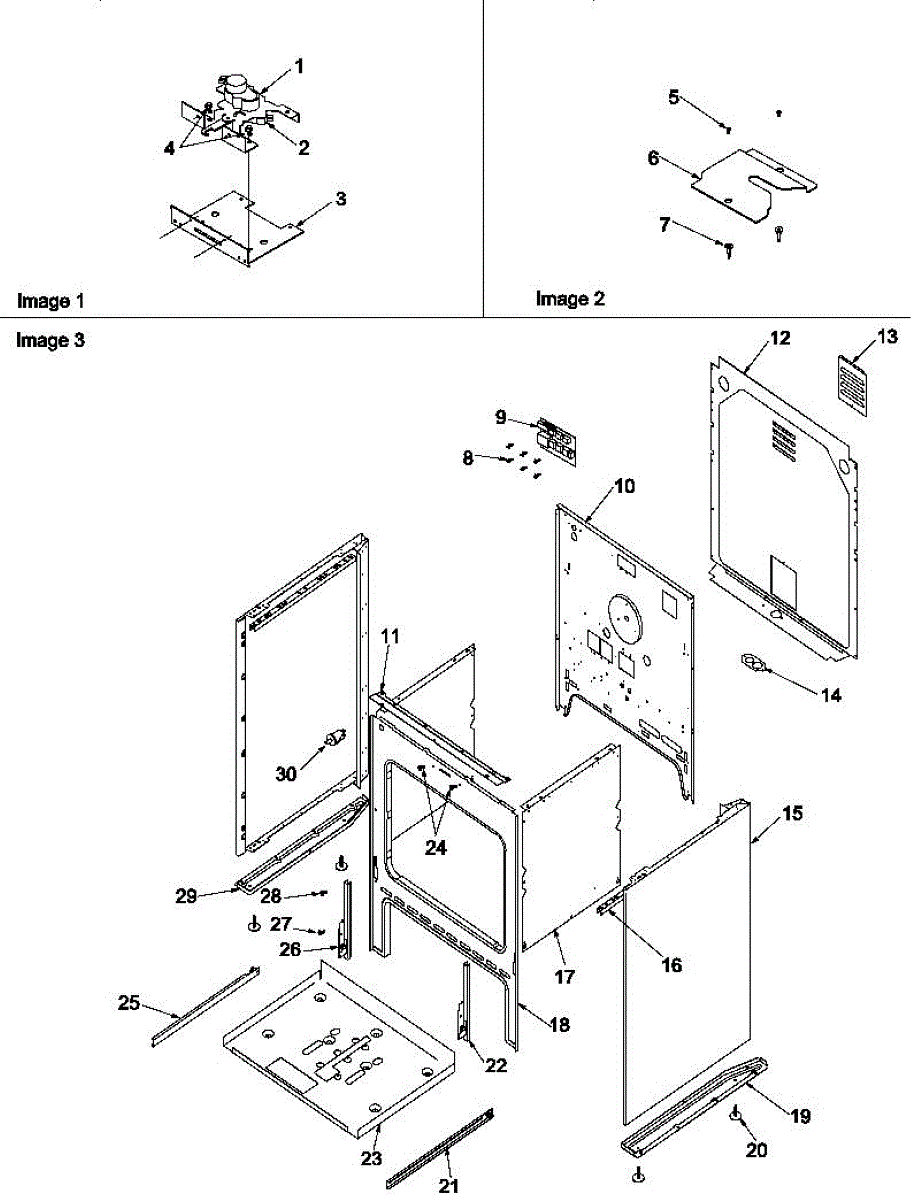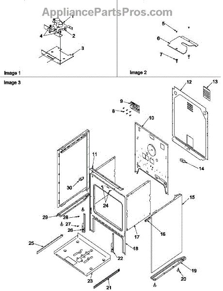 Mounting screw secures panels, brackets, and trim to the appliance frame. Replace if screw is stripped, missing, or damaged to restore secure fastening.