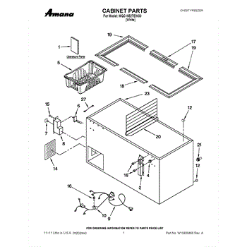 The Basket is an OEM part for Whirlpool chest freezers. It is the removable storage compartment found inside the freezer where items can be organized and stored. The basket is designed with ventilation to allow for air circulation around stored items to maintain optimal freezing temperatures.