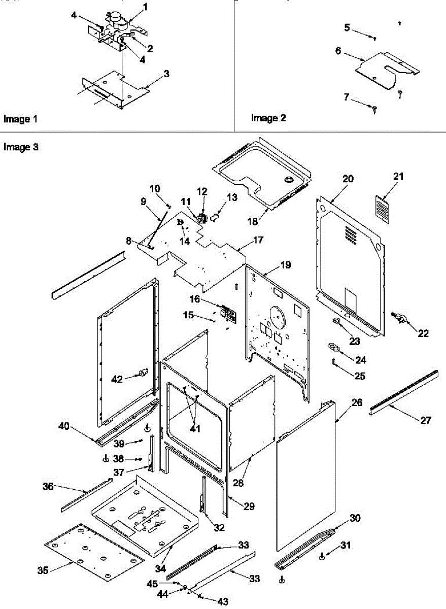 Mounting screw for range burner base assembly. Secures burner components to cooktop surface. Replace if stripped, broken, or missing during repairs.