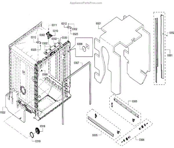 The Side Trim Strip is an OEM replacement part for Bosch dishwashers. It serves as an aesthetic finishing piece that lines both sides of the dishwasher interior tub. Causes of failure include normal wear from daily use, minor impacts during loading/unloading, and breakdown of plastic material over extended years. Symptoms of a worn side trim strip can include:
