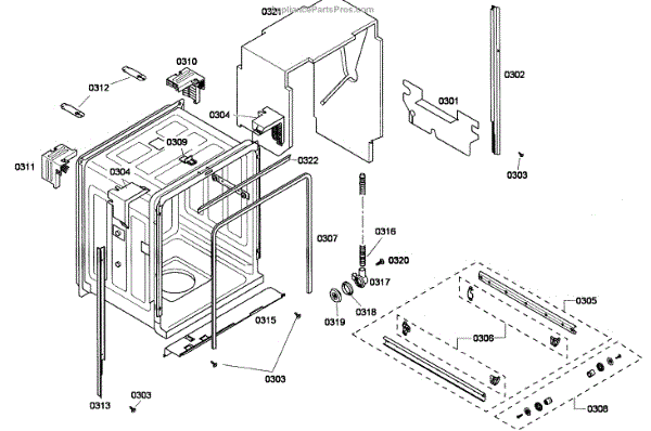 Parts for Bosch SHE43P02UC/59: Cabinet Parts