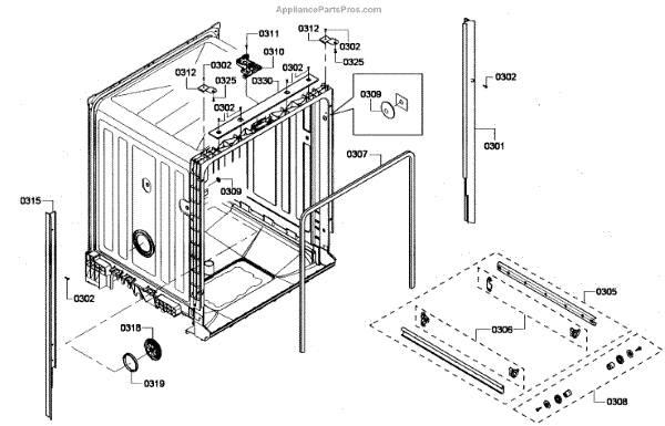 Parts for Bosch SHE4AP05UC/03: Cabinet Parts