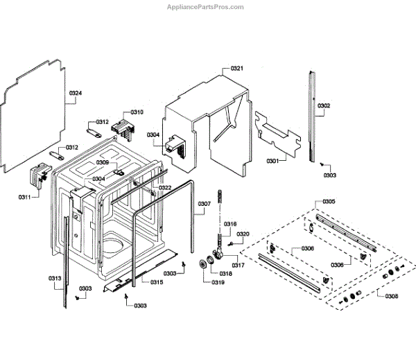 The Side Trim Strip is an OEM replacement part for Bosch dishwashers. It serves as an aesthetic finishing piece that lines both sides of the dishwasher interior tub. Causes of failure include normal wear from daily use, minor impacts during loading/unloading, and breakdown of plastic material over extended years. Symptoms of a worn side trim strip can include: