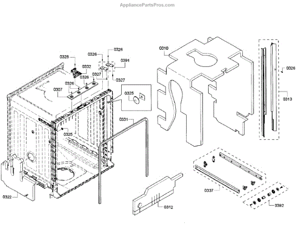 The Side Trim Strip is an OEM replacement part for Bosch dishwashers. It serves as an aesthetic finishing piece that lines both sides of the dishwasher interior tub. Causes of failure include normal wear from daily use, minor impacts during loading/unloading, and breakdown of plastic material over extended years. Symptoms of a worn side trim strip can include: