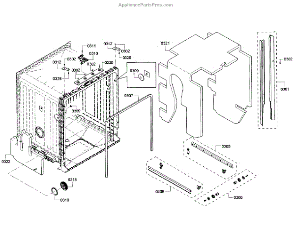 The Side Trim Strip is an OEM replacement part for Bosch dishwashers. It serves as an aesthetic finishing piece that lines both sides of the dishwasher interior tub. Causes of failure include normal wear from daily use, minor impacts during loading/unloading, and breakdown of plastic material over extended years. Symptoms of a worn side trim strip can include: