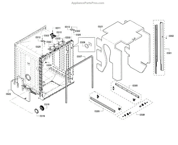 The Side Trim Strip is an OEM replacement part for Bosch dishwashers. It serves as an aesthetic finishing piece that lines both sides of the dishwasher interior tub. Causes of failure include normal wear from daily use, minor impacts during loading/unloading, and breakdown of plastic material over extended years. Symptoms of a worn side trim strip can include: