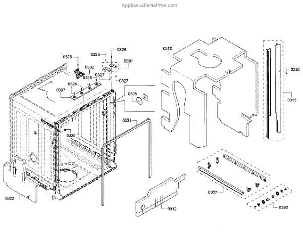 The Side Trim Strip is an OEM replacement part for Bosch dishwashers. It serves as an aesthetic finishing piece that lines both sides of the dishwasher interior tub. Causes of failure include normal wear from daily use, minor impacts during loading/unloading, and breakdown of plastic material over extended years. Symptoms of a worn side trim strip can include: