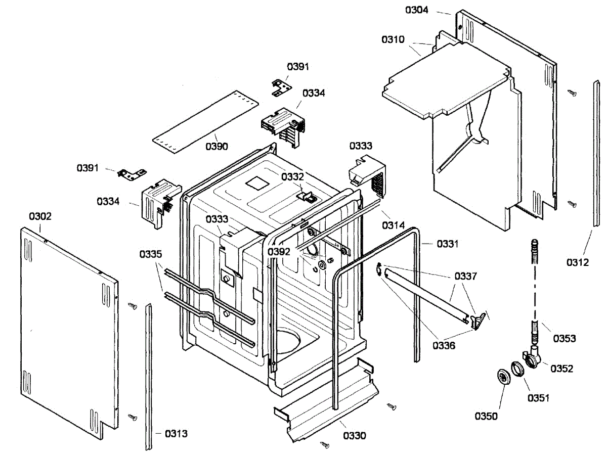 This side panel replaces a damaged or corroded cabinet side on compatible Bosch dishwashers, restoring the appliance's exterior appearance and protecting internal components. Fits one side of the dishwasher cabinet. What it does: