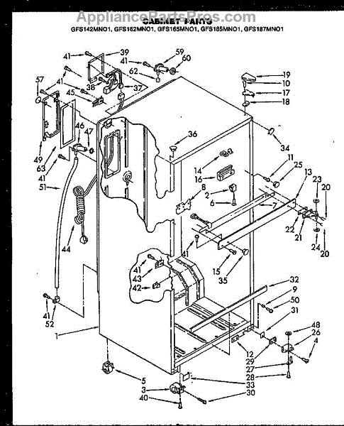 Parts for Caloric GFS165MN01: Cabinet Parts