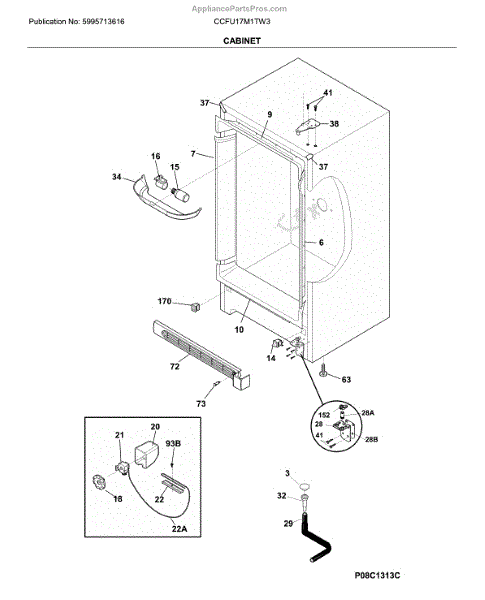 This door hinge supports and pivots the appliance door so it opens and closes smoothly. Replacing a worn or bent hinge restores alignment and sealing, helping prevent air leaks, frost buildup, and temperature fluctuations.