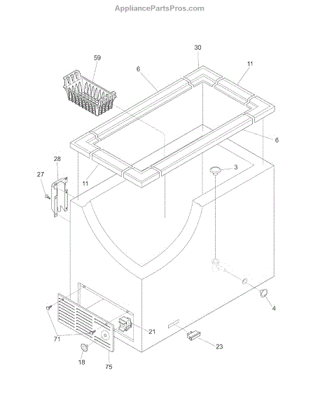 The Freezer Basket is an OEM part for Frigidaire freezers. It provides organized storage space within the freezer, allowing for easy access and efficient use of the freezer's capacity by keeping items contained and separated. It measures approximately 18 x 11 inches.