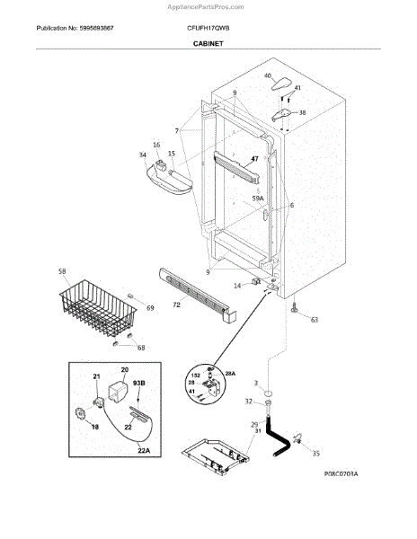The Door switch is an OEM replacement part for Frigidaire refrigerators. This part turns the light on/off as the door opens and closes. Causes of a faulty door switch include normal wear of electrical contacts from repetitive on/off cycles. Moisture exposure may potentially corrode internal connections. Symptoms of a bad light/switch include:
