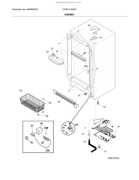 This door hinge supports and pivots the appliance door so it opens and closes smoothly. Replacing a worn or bent hinge restores alignment and sealing, helping prevent air leaks, frost buildup, and temperature fluctuations.