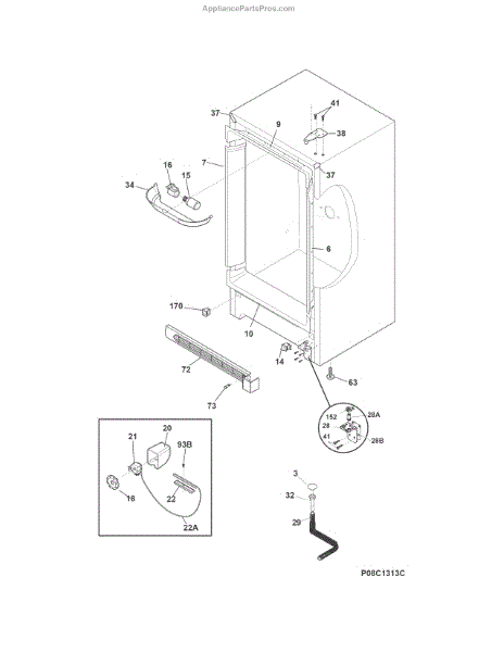 This door hinge supports and pivots the appliance door so it opens and closes smoothly. Replacing a worn or bent hinge restores alignment and sealing, helping prevent air leaks, frost buildup, and temperature fluctuations.