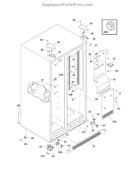 This plug covers the small factory test opening on an appliance cabinet or liner. Replacing a missing or damaged plug helps close the opening to maintain a better seal and restore a clean, finished appearance.
