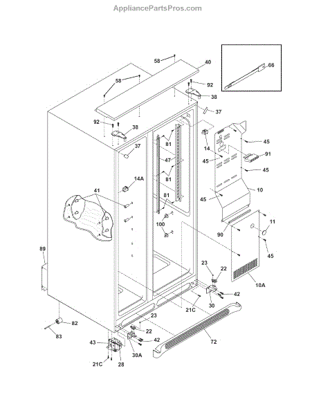 This plug covers the small factory test opening on an appliance cabinet or liner. Replacing a missing or damaged plug helps close the opening to maintain a better seal and restore a clean, finished appearance.