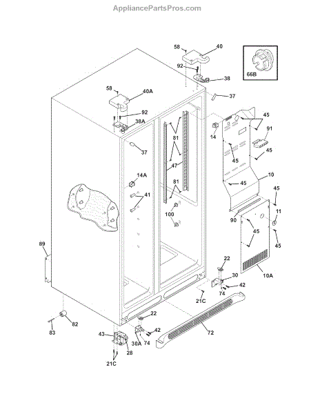 This plug covers the small factory test opening on an appliance cabinet or liner. Replacing a missing or damaged plug helps close the opening to maintain a better seal and restore a clean, finished appearance.