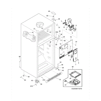 • Remove freezer drawers/shelves and the rear panel to access the evaporator fan assembly