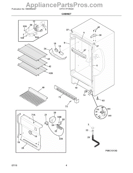 The Door switch is an OEM replacement part for Frigidaire refrigerators. This part turns the light on/off as the door opens and closes. Causes of a faulty door switch include normal wear of electrical contacts from repetitive on/off cycles. Moisture exposure may potentially corrode internal connections. Symptoms of a bad light/switch include: