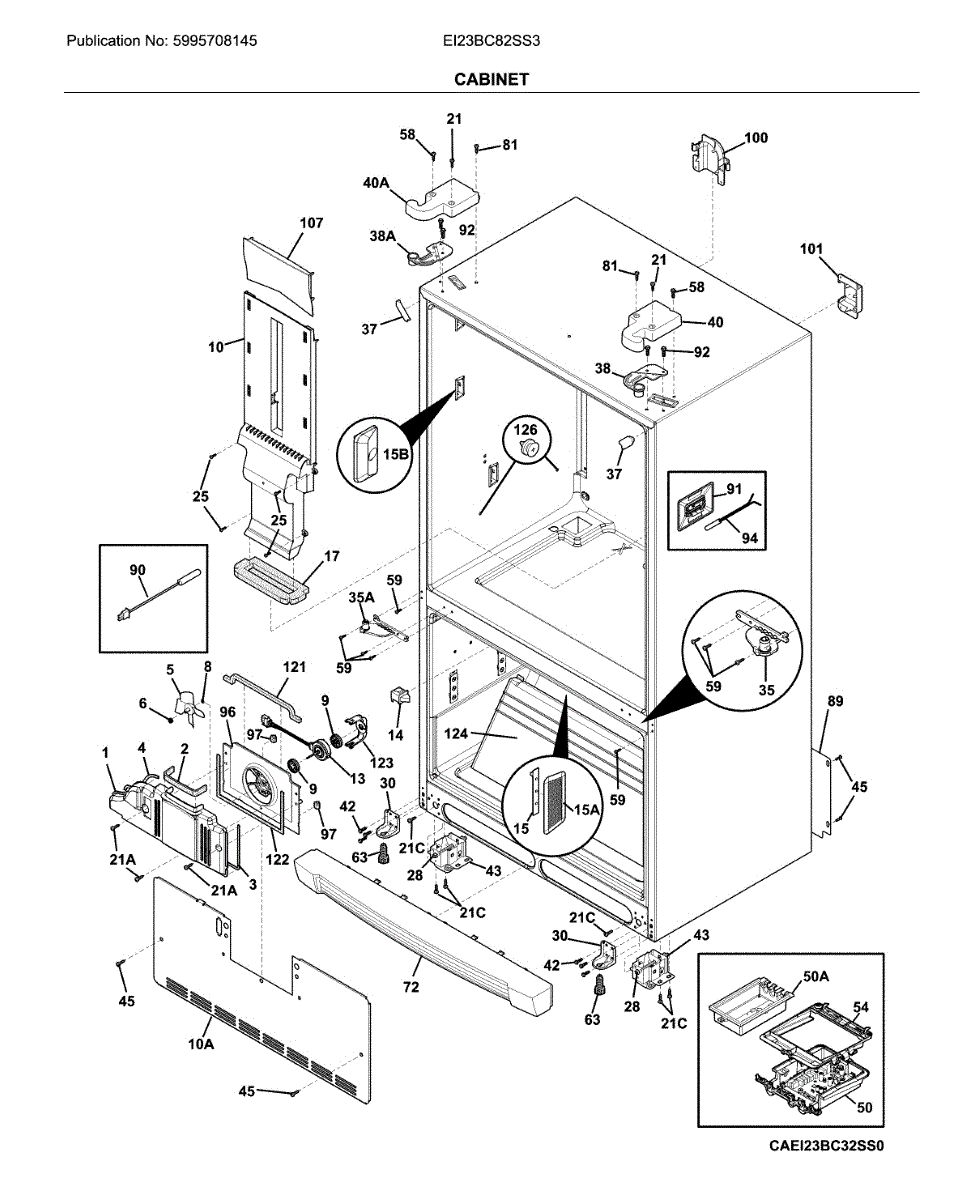 Refrigerator cover panel that conceals internal components or provides finished appearance. Replace if cracked, discolored, broken, or missing.