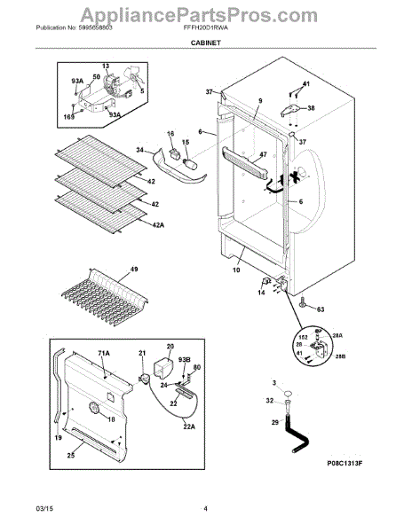 The Door switch is an OEM replacement part for Frigidaire refrigerators. This part turns the light on/off as the door opens and closes. Causes of a faulty door switch include normal wear of electrical contacts from repetitive on/off cycles. Moisture exposure may potentially corrode internal connections. Symptoms of a bad light/switch include: