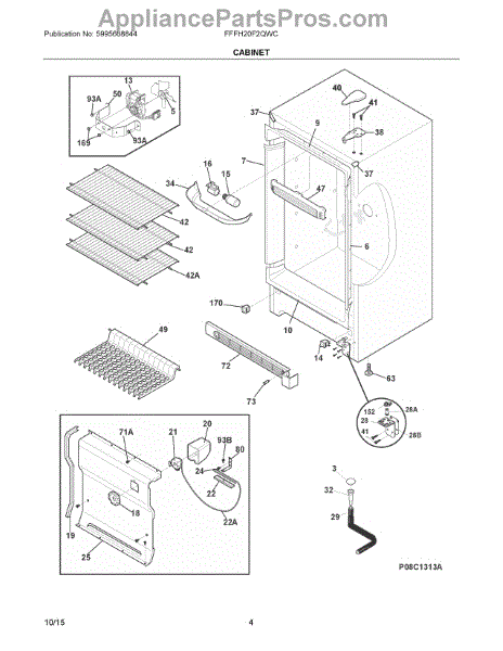 The Door switch is an OEM replacement part for Frigidaire refrigerators. This part turns the light on/off as the door opens and closes. Causes of a faulty door switch include normal wear of electrical contacts from repetitive on/off cycles. Moisture exposure may potentially corrode internal connections. Symptoms of a bad light/switch include: