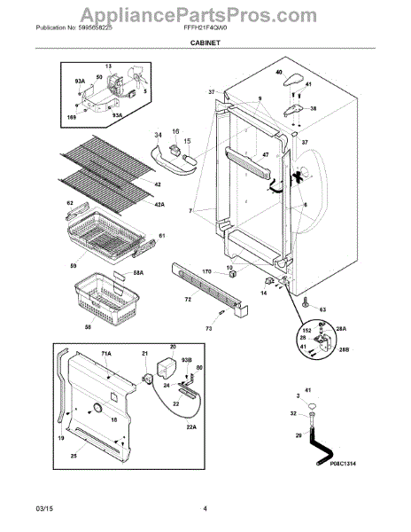The Door switch is an OEM replacement part for Frigidaire refrigerators. This part turns the light on/off as the door opens and closes. Causes of a faulty door switch include normal wear of electrical contacts from repetitive on/off cycles. Moisture exposure may potentially corrode internal connections. Symptoms of a bad light/switch include: