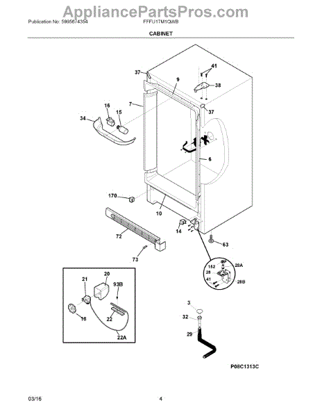 The Door switch is an OEM replacement part for Frigidaire refrigerators. This part turns the light on/off as the door opens and closes. Causes of a faulty door switch include normal wear of electrical contacts from repetitive on/off cycles. Moisture exposure may potentially corrode internal connections. Symptoms of a bad light/switch include: