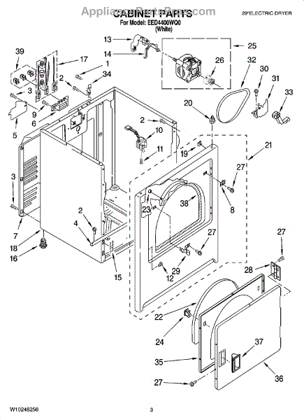 Fits all Whirlpool-made dryers (Whirlpool, Kenmore with prefix 110, Roper, KitchenAid, and Estate). Matching belt 341241 and rear support rollers 349241T. Whirlpool dryer repair manual 677818L.