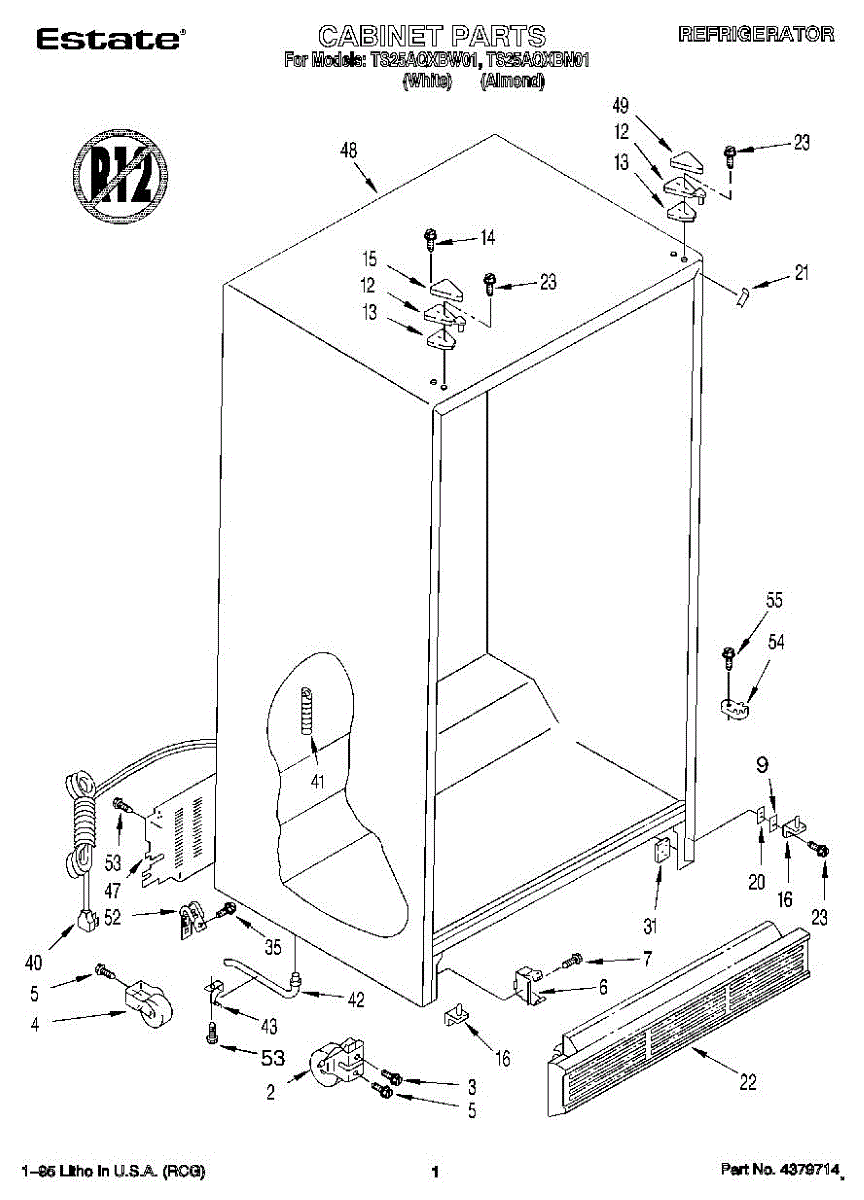 Parts for Estate TS25AQXBN01: 01 - Cabinet Parts