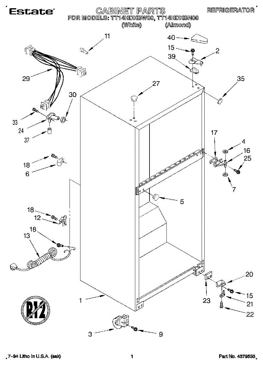 Parts for Estate TT14HDXBW00: 01 - Cabinet Parts