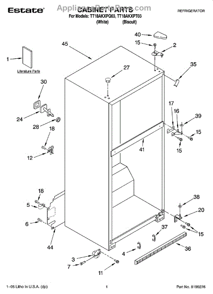The Hinge Washer is an OEM replacement part for Whirlpool refrigerators. This small washer plays a supports the refrigerator door hinge assembly. Center hinge plastic washer. Causes of a bad hinge washer are generally normal wear and tear from extensive use. As the washer absorbs pressure each time the door is opened or closed, it can gradually deteriorate or crack. Physical damage is also possible if the door is accidentally struck or slammed. Symptoms of a worn or damaged hinge washer include: