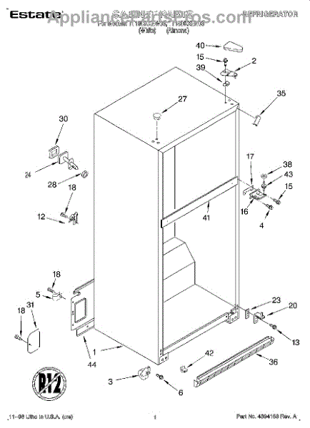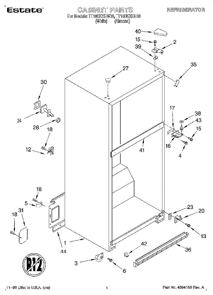 Parts for Estate TT18DKXEW03: 01 - Cabinet Parts