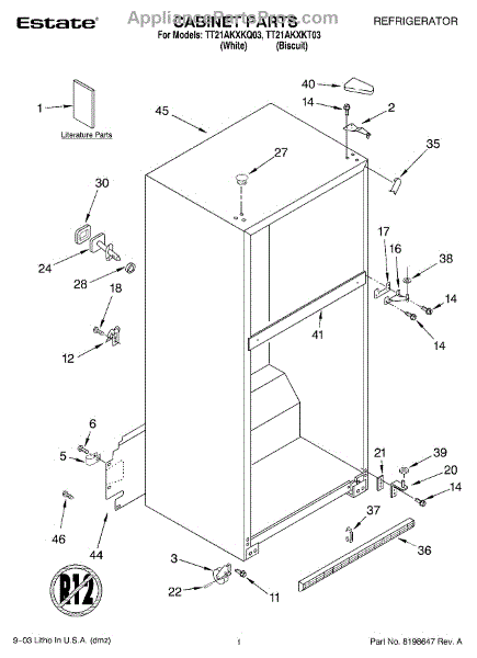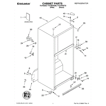 Parts for Estate TT21AKXKQ03: 01 - Cabinet Parts