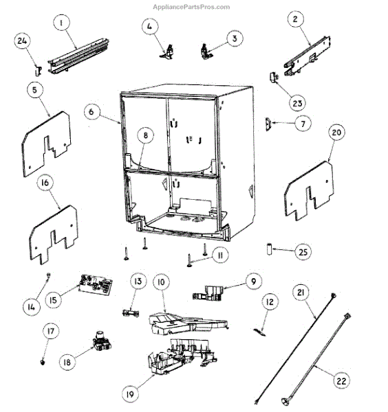 This replace chassis kit restores the dishwasher's chassis support and mounting structure to maintain proper door alignment and stable operation. It helps return panels and components to their designed fit for reliable use. What it does: