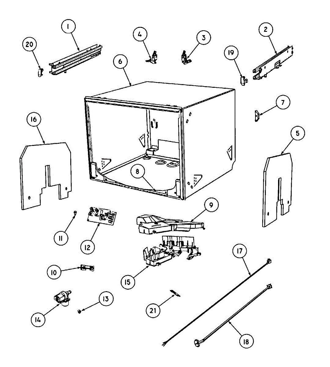 A chassis replacement kit that restores the dishwasher's structural support and mounting for the tub and internal components, helping return proper alignment and reduce abnormal vibration or movement. What it does: