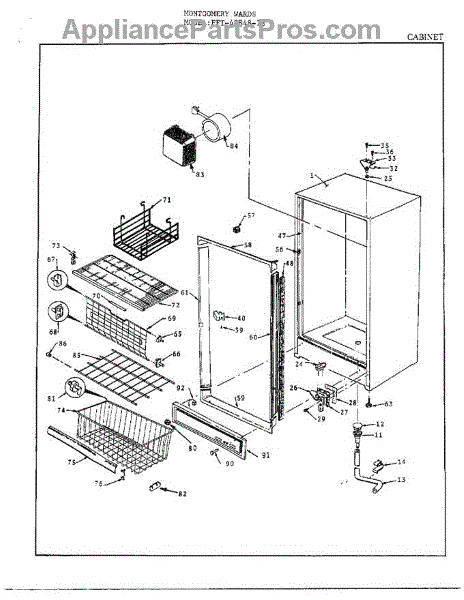 Parts for Frigidaire 40848-7B: Cabinet Parts