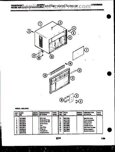 Parts for Frigidaire A05LE2E3: 02 - Cabinet Parts