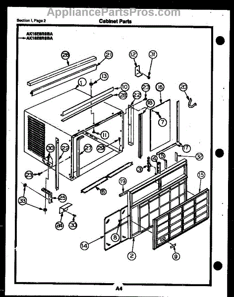 Parts for Frigidaire AK16E6RSBA: 01 - Cabinet Parts