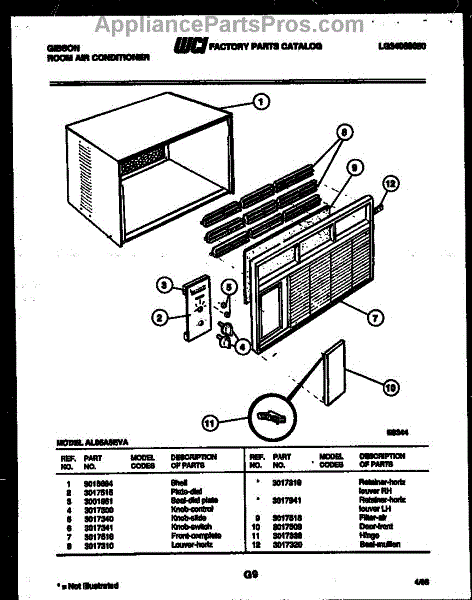Parts for Frigidaire AL05A6EVA: 02 - Cabinet Parts