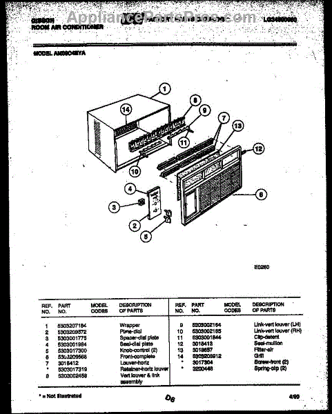 Parts for Frigidaire AM09C4EYA: 02 - Cabinet Parts
