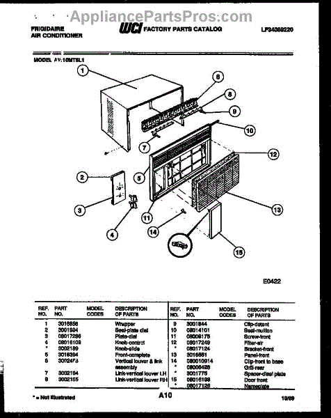 Parts for Frigidaire AW10MT5L1: 02 - Cabinet Parts