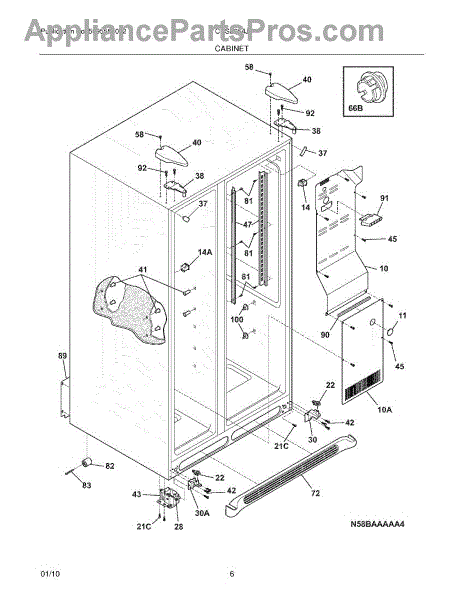 This plug covers the small factory test opening on an appliance cabinet or liner. Replacing a missing or damaged plug helps close the opening to maintain a better seal and restore a clean, finished appearance.
