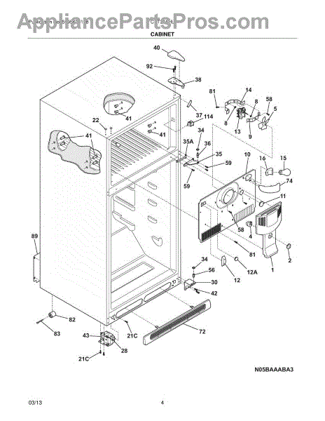The Access Cover is an OEM replacement part for Frigidaire refrigerators. It serves as a protective barrier, covering the internal cooling system and wiring components.