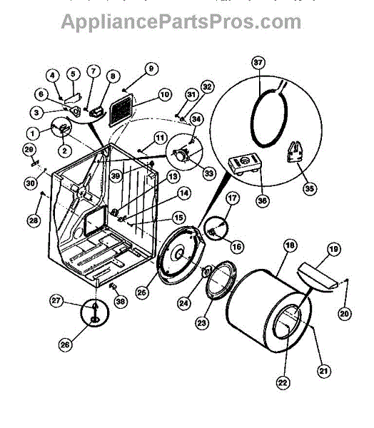 The Drum Bearing Bracket is an OEM replacement part for Frigidaire dryers. It holds and supports the drum bearing, which allows the dryer drum to spin smoothly during the tumbling and drying cycle. Causes of failure can be cracking or breaking of the bracket over time due to constant use and stress. Improper installation that puts strain on the bracket may also lead to issues. Symptoms of a bad drum bearing bracket include:
