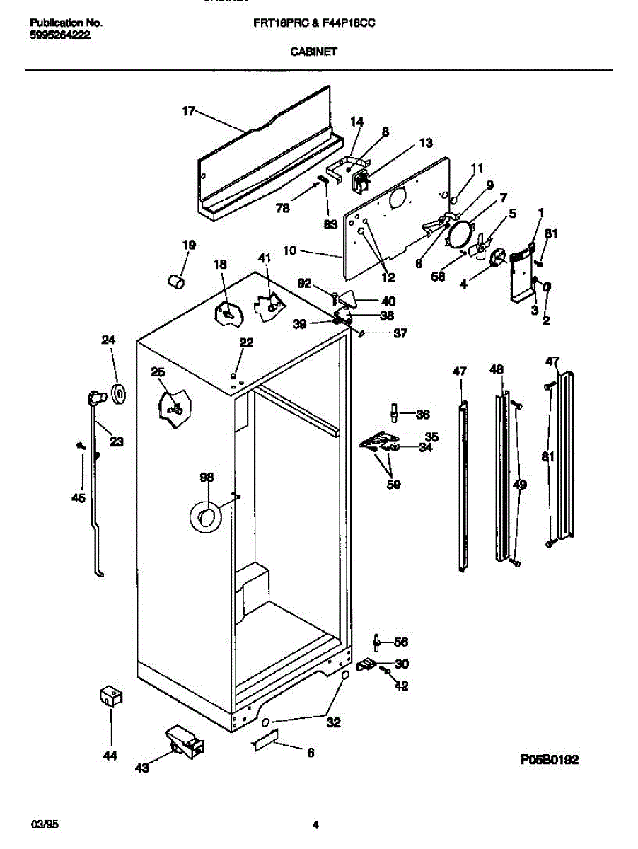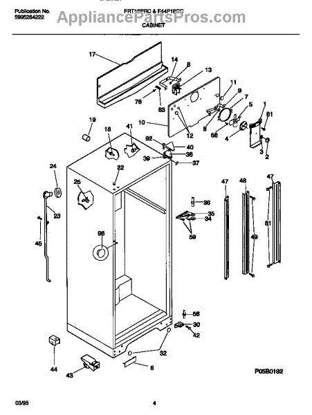 Parts for Frigidaire F44P18CCW0: 03 - Cabinet Parts